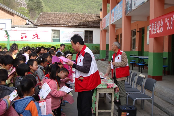 給小學(xué)生發(fā)放宣傳資料慰問(wèn)貧困群眾