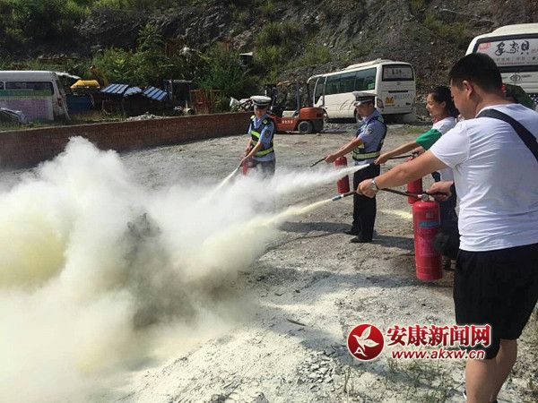 安康新聞網(wǎng)訊(通訊員 蘇婷 葛兵)2017年6月23日上午,平利交警城區(qū)中隊(duì)聯(lián)合安監(jiān)、運(yùn)管、消防及客運(yùn)企業(yè)等相關(guān)職能部門在縣客運(yùn)站開(kāi)展道路旅客運(yùn)輸企業(yè)安全消防應(yīng)急演練。