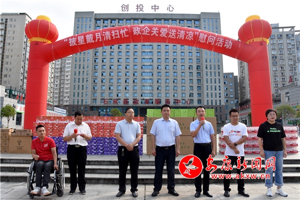 活動(dòng)儀式上,縣創(chuàng)建辦會(huì)同石泉縣茗泉商貿(mào)有限公司等3家愛(ài)心企業(yè),向高溫天氣里依然堅(jiān)守工作崗位的環(huán)衛(wèi)職工致以衷心的感謝和崇高的敬意,分別贈(zèng)送茶葉、飲料、礦泉水、毛巾等防暑降溫物品,共計(jì)價(jià)值人民幣22000元,惠及165名環(huán)衛(wèi)職工,充分體現(xiàn)了黨和政府及社會(huì)各界對(duì)環(huán)衛(wèi)職工的關(guān)心關(guān)愛(ài)。