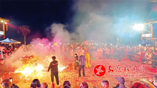 池河鎮(zhèn)系列非遺民俗活動(dòng)從大年三十開始,一直持續(xù)到正月十五,每晚在明星村醉美桑海景區(qū)游客中心舉行,其中以燒獅子最為熱鬧。燒獅子的花筒簡(jiǎn)稱花,“花”與“發(fā)”諧音,獅子“要花”即是“要發(fā)”的意思。合著樂隊(duì)鑼、鼓、鈸三大件樂聲大起,獅子搖頭擺尾舞動(dòng),煙花爆竹交融,騰挪跳躍,越舞越猛,真可謂“金花四射神獅舞,電閃雷鳴映長(zhǎng)空”。