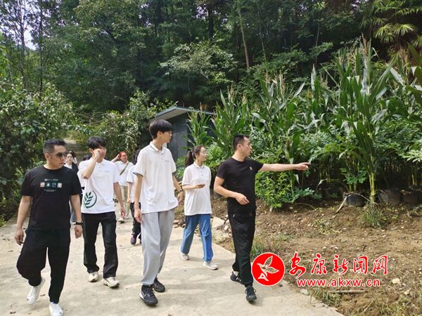 圖為團(tuán)隊(duì)成員在村書(shū)記帶領(lǐng)下調(diào)研