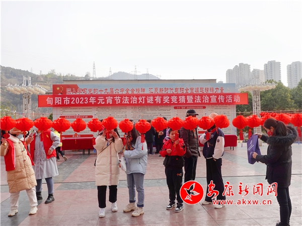 正月十三,旬陽(yáng)市祝爾慷廣場(chǎng),人潮涌動(dòng),熱鬧非凡。走近一看,原來(lái)是旬陽(yáng)市正在舉辦2023年元宵節(jié)法治猜燈謎暨普法宣傳活動(dòng)。大紅燈籠高高掛,法治謎語(yǔ)迎風(fēng)飄;顒(dòng)現(xiàn)場(chǎng),紅紅火火、喜氣洋洋,引得過(guò)往群眾駐足觀看、爭(zhēng)相競(jìng)猜。