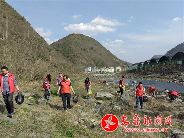 活動現(xiàn)場,全體參與人員身穿紅馬甲,拿上鐵鍬、水桶等工具,分工協(xié)作、配合默契,揮鍬挖坑、扶護(hù)樹苗、培土澆水。大家熱情高漲,干勁十足,經(jīng)過兩個小時的奮戰(zhàn),300余棵樹苗迎風(fēng)挺立,在春日里展現(xiàn)勃勃生機(jī)。植樹活動結(jié)束后,全體人員對主河道垃圾、雜物進(jìn)行全面清理。