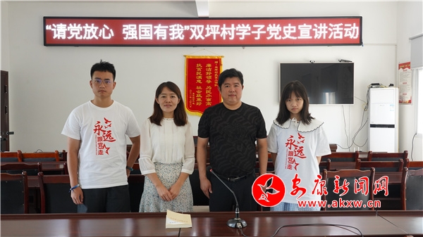 本網(wǎng)訊(通訊員 毛潤 成軍)烈日炎炎的七月,走進紫陽縣城關(guān)鎮(zhèn)雙坪村,片片茶園在陽光的映照下,顯得格外翠綠。幾名準大學生手拿文稿走進該村廣播室,對著話筒聲情并茂的播報。原來,他們利用中午休憩的空檔時間開展黨史學習教育宣講活動。