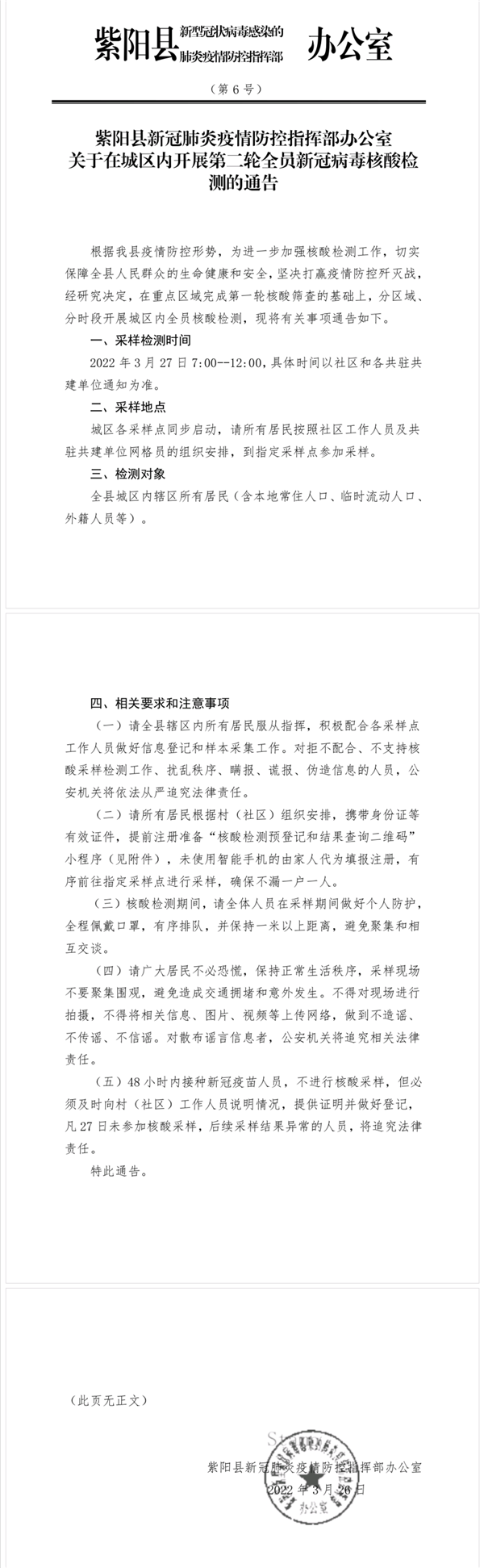 通告!紫陽(yáng)縣在城區(qū)開(kāi)展第二輪全員新冠病毒核酸檢測(cè)