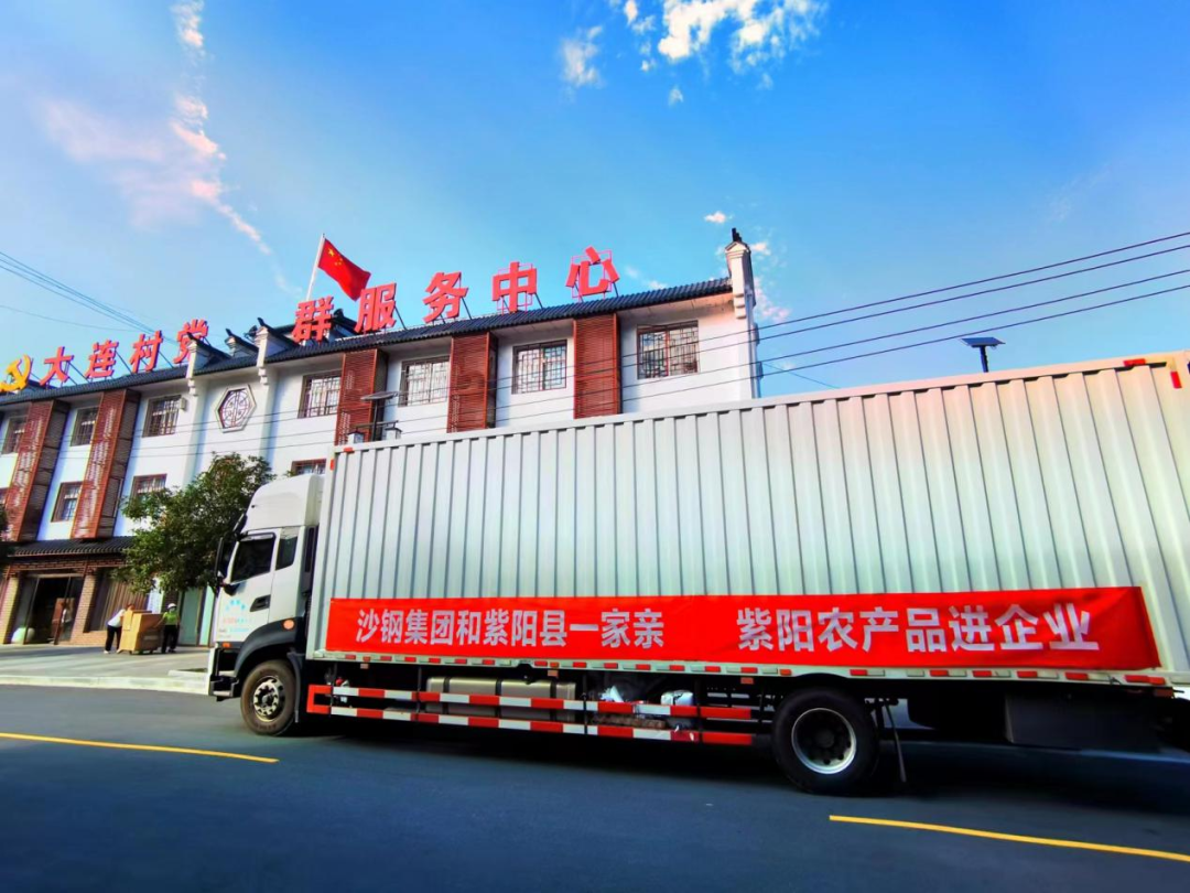 8月16日,首輛滿載著紫陽農特產品的貨車從紫陽出發(fā)駛向江蘇。這輛懸掛著“沙鋼集團和紫陽縣一家親 紫陽農產品進企業(yè)”橫幅的貨車里,是全國工商聯(lián)不駐會副主席企業(yè)—江蘇沙鋼集團消費幫扶紫陽縣首次購買的25萬元農副產品,包括紫陽富硒茶、撩酸菜等特色農副產品。