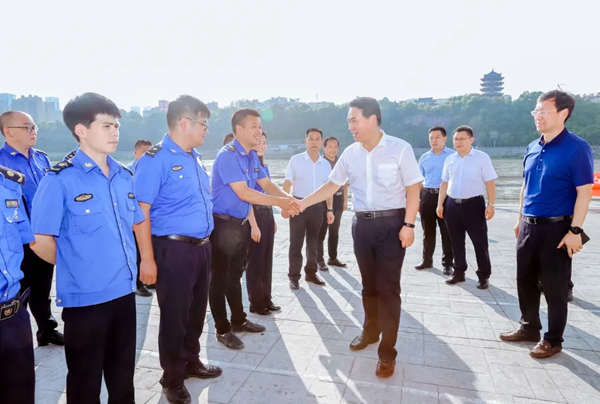 在安康龍舟文化園,趙俊民督導(dǎo)漢江禁洗工作,看望漢江中心城區(qū)段環(huán)境保護(hù)工作人員,并送去防暑降溫慰問品,叮囑他們?cè)陂_展河道洗滌勸導(dǎo)活動(dòng)的同時(shí),注意防暑降溫、保重身體。