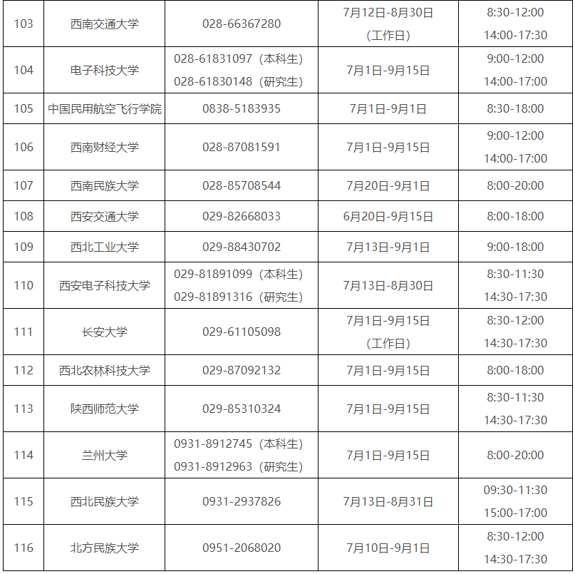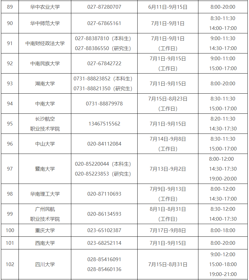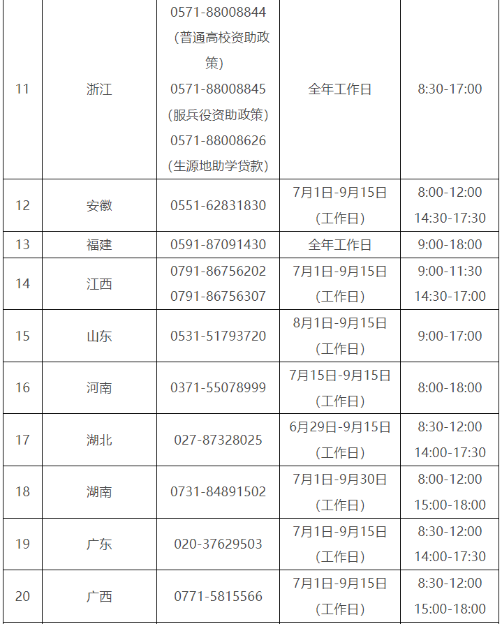 各。ㄗ灾螀^(qū)、直轄市)和中央部門所屬高校同步開通了熱線電話,電話號碼與開通時間可查看匯總表。