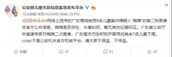 網(wǎng)絡上流傳的廣東增城被拐9名兒童案件嫌疑人“梅姨”的第二張畫像非官方公布信息,梅姨是否存在,長像如何,暫無其他證據(jù)印證。廣東省公安廳未邀請專家對梅姨二次畫像,廣東警方仍在積極開展尋找其余7名兒童下落。ccser不是公安機關(guān)官方權(quán)威平臺,請大家不信謠、不傳謠。