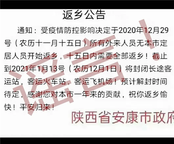 請注意!近日有不法分子冒充安康市政府在網(wǎng)上發(fā)布《返鄉(xiāng)公告》