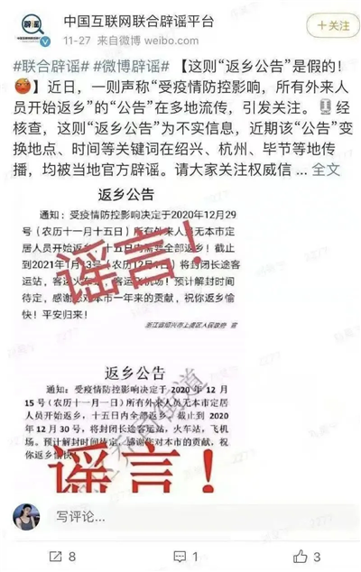 近日,有不法分子冒充安康市政府在網(wǎng)絡上發(fā)布《返鄉(xiāng)公告》,該公告內(nèi)容純屬捏造。mKd安康新聞網(wǎng)