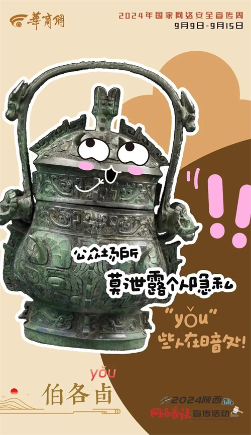 9月9日下午,陜西第十一屆國家網(wǎng)絡(luò)安全宣傳周將在寶雞市開幕。寶雞,曾出土無數(shù)青銅國寶,被譽(yù)為“青銅器之鄉(xiāng)”。今天“國寶”有話說,“點醒”你我他→ EBQ安康新聞網(wǎng)