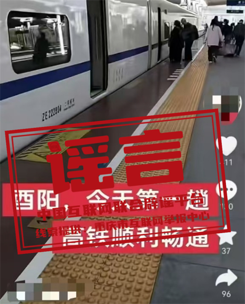 真相:近日,某網(wǎng)民在互聯(lián)網(wǎng)平臺(tái)發(fā)布信息稱“酉陽,今天第一趟高鐵順利暢通”,引發(fā)關(guān)注。經(jīng)核實(shí),網(wǎng)傳信息系謠言,酉陽縣暫未建成高鐵站。根據(jù)建設(shè)計(jì)劃,黔吉高鐵重慶段將于年內(nèi)開工建設(shè),線路貫穿黔江區(qū)、酉陽縣、秀山縣三地,線路全長約224.2km,全線設(shè)置車站3座,整個(gè)建設(shè)工期大概5年左右,預(yù)計(jì)在2030年之前全面建成通車。目前,警方已對(duì)造謠者展開調(diào)查。(來源:“重慶辟謠”微信公眾號(hào))