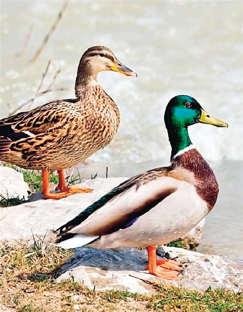 又名野鴨。雄鳥(niǎo)頭綠色,有一白色領(lǐng)環(huán),胸栗色,翼鏡藍(lán)綠色,尾上、下覆羽黑色,嘴黃綠色,腳橙紅色;雌鳥(niǎo)嘴橙黃色,貫眼紋黑褐色,全體褐色,有暗褐色斑紋。(來(lái)源:安康市林學(xué)會(huì))aQ4安康新聞網(wǎng)