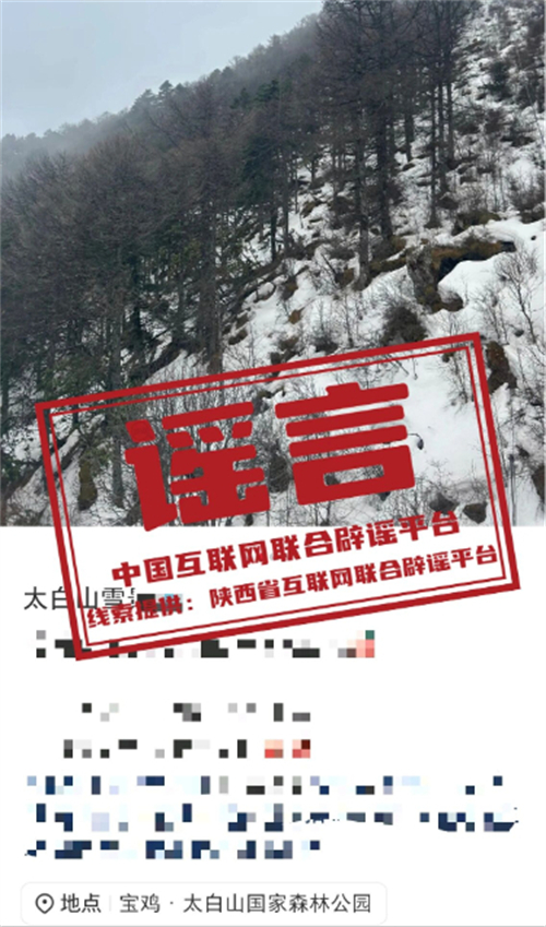 真相:近日,有網(wǎng)民發(fā)帖稱“陜西太白山迎來今秋第一場大雪”,并曬出視頻畫面,山林間白雪紛飛,屋檐上覆蓋著薄雪。相關(guān)視頻引發(fā)關(guān)注,有網(wǎng)民表示立即前往景區(qū)賞雪。對此,景區(qū)工作人員回應稱,網(wǎng)傳視頻為往年下雪場景,目前太白山正在下大雨,景區(qū)已經(jīng)關(guān)閉。提醒游客出行前應關(guān)注景區(qū)的實時公告與天氣情況,以免受虛假信息誤導。(來源:陜西省互聯(lián)網(wǎng)聯(lián)合辟謠平臺、@上游新聞)