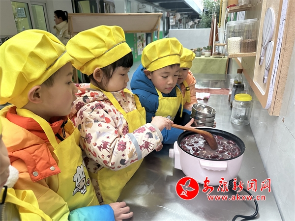 ▲ 石泉縣第二幼兒園開展“童心知民俗 開心過(guò)臘八”主題活動(dòng),孩子們慢慢熬制香甜可口的臘八粥,將傳統(tǒng)文化與勞動(dòng)教育相融合。陳遠(yuǎn)熙 攝
