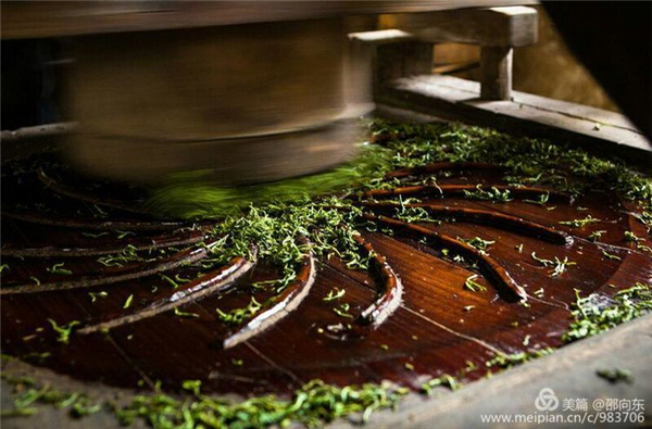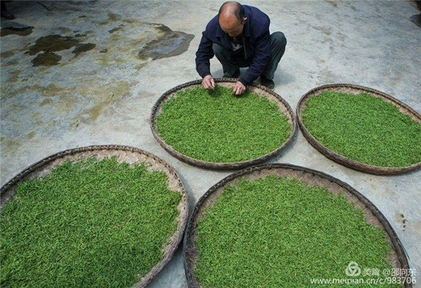 一群群花紅柳綠的采茶人,依著茶山一字排開,嬉笑逗樂間兩手如飛梭,一片片毛尖芽頭便攥入手中,落入竹簍,其穩(wěn)、準、快、靈如同魔術。初產之春獨早銀針每斤芽頭約四萬枚,左右誤差不出百余,據(jù)說這明前銀針唯有這十七、八的山妹子親手采摘,制出的茶才別有一番甜香之氣,這也是傳統(tǒng)紫陽貢茶奧妙之所在。