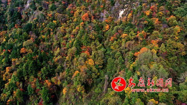 金秋十月,清風送爽。寧陜縣境內的平河梁自然保護區(qū)層林盡染,讓人不禁感謝大自然的饋禮,陶醉于這美景之中,一眼望去滿眼色彩斑斕,秋日山色美不勝收。(楊寧 攝)5z7安康新聞網(wǎng)