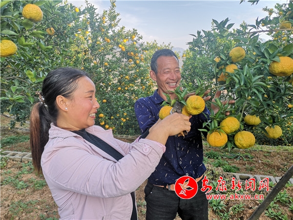 金秋時(shí)節(jié),旬陽(yáng)縣呂河鎮(zhèn)冬青村的百畝獅頭柑喜獲豐收,這是該村二組村民周琴夫婦正在采摘已經(jīng)成熟的獅頭柑。據(jù)了解,今年她家種植的5畝獅頭柑預(yù)計(jì)收入能達(dá)到5萬(wàn)多元。(陳榮斌 攝)bwb安康新聞網(wǎng)