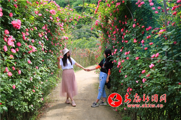 從安康城區(qū)出發(fā),沿包茂高速至流水東下,再沿庫遷路行約6公里便到達(dá)漢濱區(qū)流水鎮(zhèn)田心社區(qū)。在這里,兩百余畝玫瑰(月季)花開正艷,一幅天藍(lán)水碧花美的絢麗畫卷悠然展現(xiàn)。走進(jìn)園中,猶如置身花海,微風(fēng)吹來,一股股花香撲鼻而來,玫瑰、月季、薔薇等各種嬌嫩欲滴的花兒令人沉醉,一簇簇,一叢叢,妖嬈美麗。前來賞花的游人絡(luò)繹不絕,大家觀賞美景的同時(shí),不時(shí)拿出手機(jī)在花叢中自拍、合影。(文圖/吳亞君 劉一薇 胡智賢)