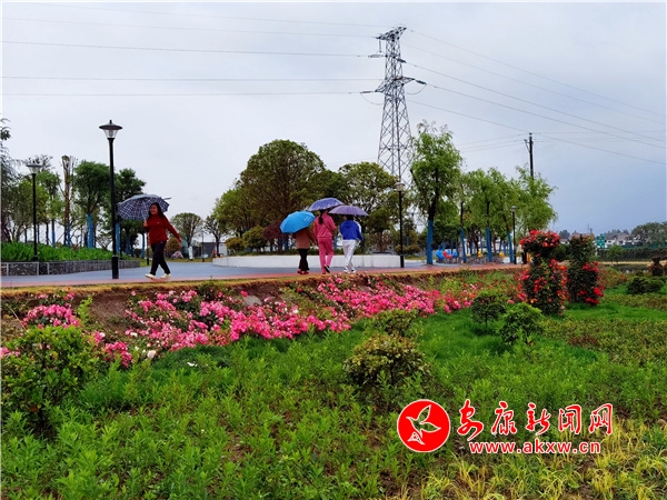5月14日,漢陰縣迎來了2022年立夏后的首場降雨。在漢陰縣花月灣迎賓公園,鮮花盛開,鋪滿路邊。市民們行走在雨中,呼吸著春雨的氣息,聞著鮮花四溢的香味,鍛煉著身體,心曠神怡。(圖文/林愛銘)g8h安康新聞網(wǎng)