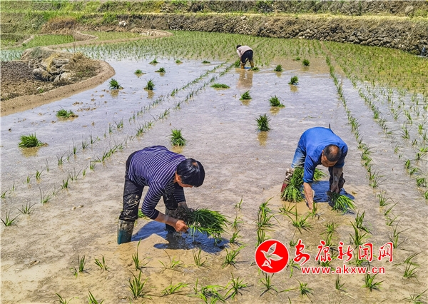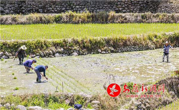 初夏時(shí)節(jié),在漢陰縣漩渦鎮(zhèn)鳳堰古梯田里,一個(gè)個(gè)忙碌的身影點(diǎn)綴在亮麗的梯田畫面之間,隨處可見農(nóng)民忙碌的身影,村民們往來的腳步不斷映入眼簾。 (圖文/陳德模)JQB安康新聞網(wǎng)