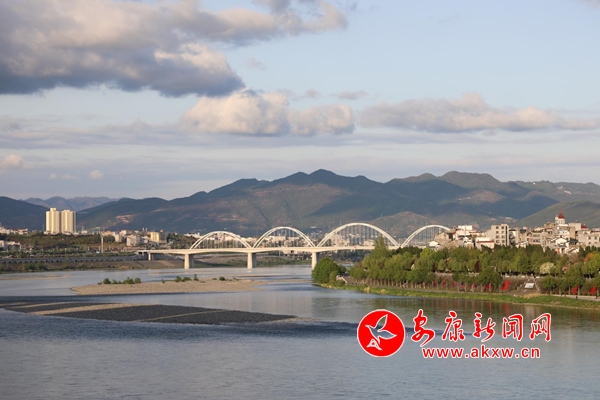 節(jié)逢清明,雨霽初晴。落日熔金,清江如練。天藍(lán)若海,流云似鯨。畫中城,城中畫,兩岸青山翠欲滴 ,春色滿城等你來(lái)。ㄓ浾 劉淵) fUE安康新聞網(wǎng)