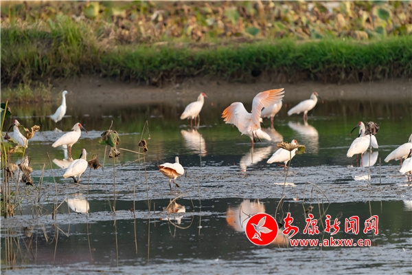 近日,有攝影愛好者在漢陰縣雙乳鎮(zhèn)千畝荷塘景區(qū)拍到50余只朱鹮的曼妙身影。他們時(shí)而悠閑覓食,時(shí)而閑庭散步,時(shí)而展翅高飛,潔白的羽毛,艷紅的頭冠和黑色的長嘴,成為秋日里一道靈動的風(fēng)景。ZE6安康新聞網(wǎng)