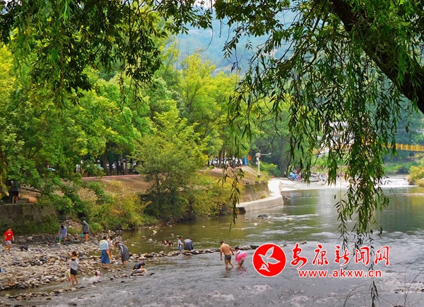縣河鎮(zhèn)位處安康城南十余公里處,鎮(zhèn)內(nèi)植被茂密、景色宜人、美麗的黃洋河穿鎮(zhèn)而過。近年來,該鎮(zhèn)充分發(fā)揮資源優(yōu)勢,積極打造生態(tài)旅游,轄區(qū)內(nèi)除紅色景點牛蹄嶺外,每到周末,毛壩田園也會吸引眾多游客紛紛前來納涼戲水、休閑游玩。(趙波 攝)Prw安康新聞網(wǎng)
