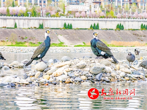 春日陽光下,漢江邊迎來一群水鳥。它們有的閉目養(yǎng)神,有的梳理羽毛,有的呆呆看著遠(yuǎn)方,為這片江水增添了無盡的活力。近年來,我市持續(xù)推進(jìn)漢江水質(zhì)保護(hù)工作,清澈透明的水質(zhì)吸引了越來越多的普通秋沙鴨、白骨頂雞、蒼鷺、鴛鴦等各種水鳥在這里棲息,給漢江增添了一道亮麗的風(fēng)景線。高潔 攝 TQV安康新聞網(wǎng)