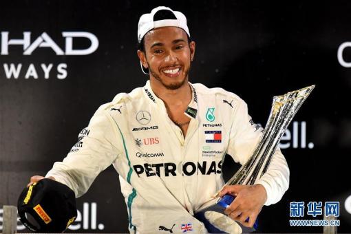 11月25日,漢密爾頓在領(lǐng)獎(jiǎng)臺(tái)上慶祝奪冠。 當(dāng)日,2018賽季世界一級(jí)方程式賽車(chē)錦標(biāo)賽(F1)最后一站比賽在阿聯(lián)酋阿布扎比結(jié)束爭(zhēng)奪,梅賽德斯車(chē)隊(duì)英國(guó)車(chē)手漢密爾頓……