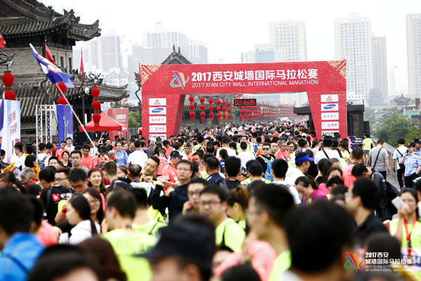 人民網北京9月11日電 2017西安城墻國際馬拉松賽于昨日上午8:00鳴槍開賽。作為世界唯一將賽道設置在完整城墻之上的馬拉松賽事,城墻馬自舉辦以來就備受廣大跑友的關注。今年亦是如此,來自美國、澳大利亞、法國、日本等13個國家和地區(qū)的3000名運動員齊聚古城墻,共同見證了這場歷史文化與體育競技相融合的跑步盛典。