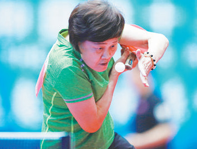 | 江蘇選手周新寧在女子單打60歲以上組比賽中。 |