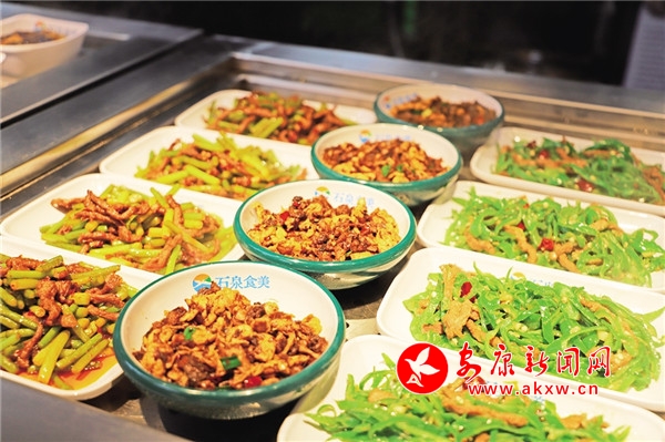 活動現場,鑼鼓喧天,食客如織,一道道美味的小碗菜在臺面上整齊排列。在顧客選購結束后,只需將托盤放到收銀臺前掃描,即可快速自助結賬。經濟實惠、方便快捷的小碗菜,已覆蓋堂食、外賣、一人食、家庭小吃等各種消費場景,獨特的石泉風味,更能讓顧客吃飽又吃好。