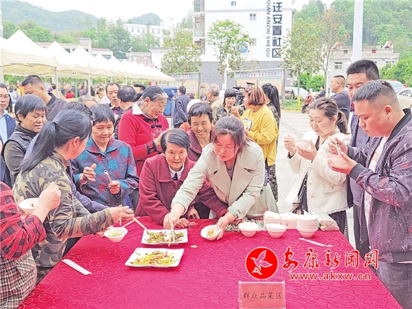 比賽中還設(shè)置了群眾品鑒環(huán)節(jié),60多道精心制作的美味佳肴讓參與群眾一飽口福。紅升社區(qū)居民汪德玉說(shuō):“我們縣河是個(gè)山清水秀的好地方,舉辦美食大賽這是第一次,能吸引各個(gè)地方的游客來(lái)品嘗我們縣河的味道,特別是辣子雞,做得很好。”