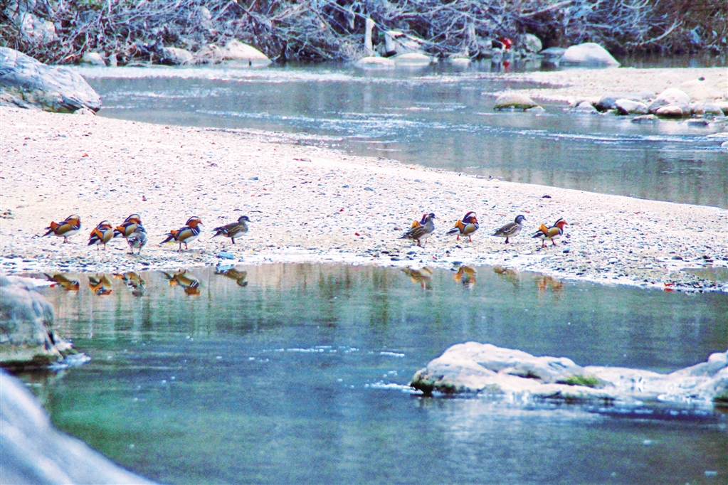 □ 楊繼斌周末,我照例在河邊拍朱鹮,偶遇一起打羽毛球的好友楊林!皵z影家,我們院子后面河里有一群鴛鴦,好看得很,你不去拍幾張美照。”他打趣地說道。“寧陜……