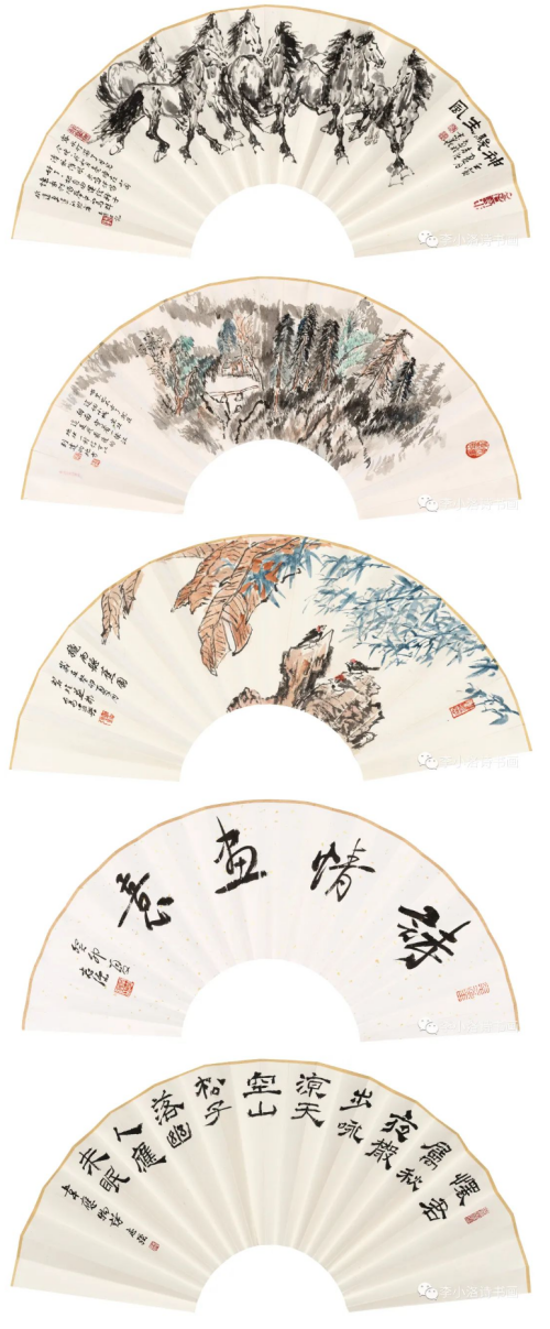 詩人寇宗鄂和林莽,均為《詩刊》編委,都曾擔(dān)任過《詩刊》的編輯部主任?茏诙踉鴰煆闹剿嫾倚毂蓖,詩人牛漢,詩畫兼擅。林莽作為白洋淀詩群和朦朧詩重要代表詩人,詩畫相融,桃李天下。張瑞田早年寫詩,后來多寫散文和書畫評論,是當(dāng)今活躍的評論家和書家。李木馬,李小洛,都曾參加過《詩刊》社的“青春詩會”,就讀魯迅文學(xué)院高研班,在詩歌和書畫創(chuàng)作上多年努力,取得了一定的成績……一人一格、一人一品,一扇一意、一扇一味,五位詩人作家的詩意筆墨,傳遞著各自對生活、藝術(shù)與世界的熱愛,認(rèn)知與發(fā)現(xiàn)。君子和而不同,透過一幀幀詩意盎然的扇面小品,在交相輝映的筆情墨趣中,可以看到他們相互啟迪,感染和照亮的友誼與藝術(shù)追求。