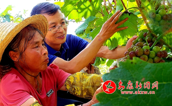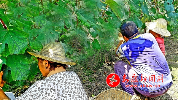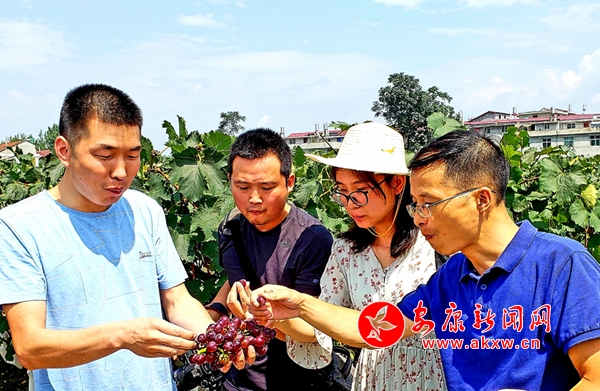 正午時(shí)分,在漢濱區(qū)五里鎮(zhèn)劉營(yíng)村一組,一波人正在“黑牛”上躥下跳地帶領(lǐng)下,揮汗如雨踏草穿林,來(lái)到葡萄樹(shù)旁、甜桿兒林里、瓜前李下,拍照片、尋問(wèn)題,完全不顧氣溫已達(dá)到“白熱化”階段。
