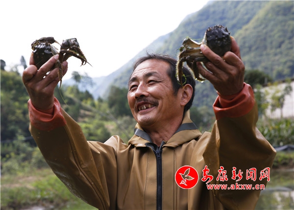 金秋時(shí)節(jié),秦巴處處穰穰滿(mǎn)家。進(jìn)入漢濱區(qū)茨溝鎮(zhèn)營(yíng)盤(pán)埡村水產(chǎn)養(yǎng)殖基地,蟹農(nóng)游石平正忙著下地籠挑選螃蟹,送往安康、西安等市場(chǎng)銷(xiāo)售。2018年,游石平在營(yíng)盤(pán)埡村流轉(zhuǎn)20多畝水田養(yǎng)殖大閘蟹,平均每畝養(yǎng)殖水面產(chǎn)蟹500斤,每斤60元,今年收入有望達(dá)到60萬(wàn)元。