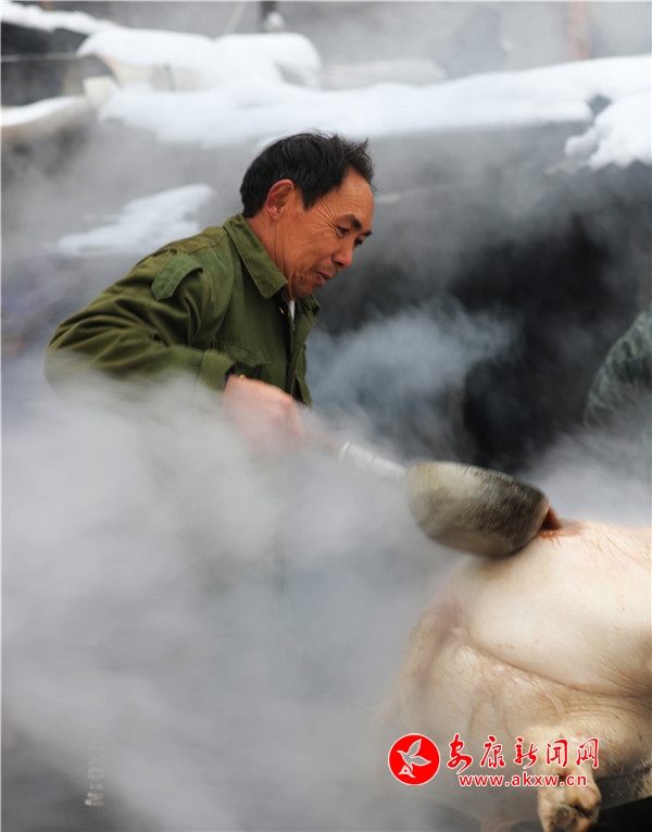 當(dāng)天,張成凱家一口氣殺了6頭豬,約1200斤,收入3萬多元;張秀柱家殺了2頭豬,400余斤,收入約1萬元。jEb安康新聞網(wǎng)